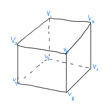 여덟개의 정점 vi로 이루어진 직육면체의 각 정점에 이 세 변환을 연달아 적용한다고 가정한다.