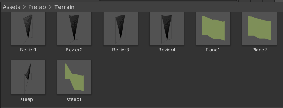 우선 테스트를 위해 적당한 지형 메쉬 3개를 만들어서 프리팹화 했다
