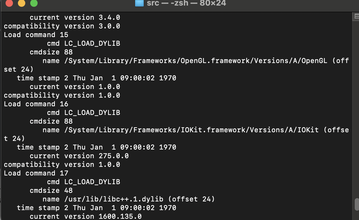 어쨌든 otool -l 을 통해 로딩된 링크들을 확인해보면..