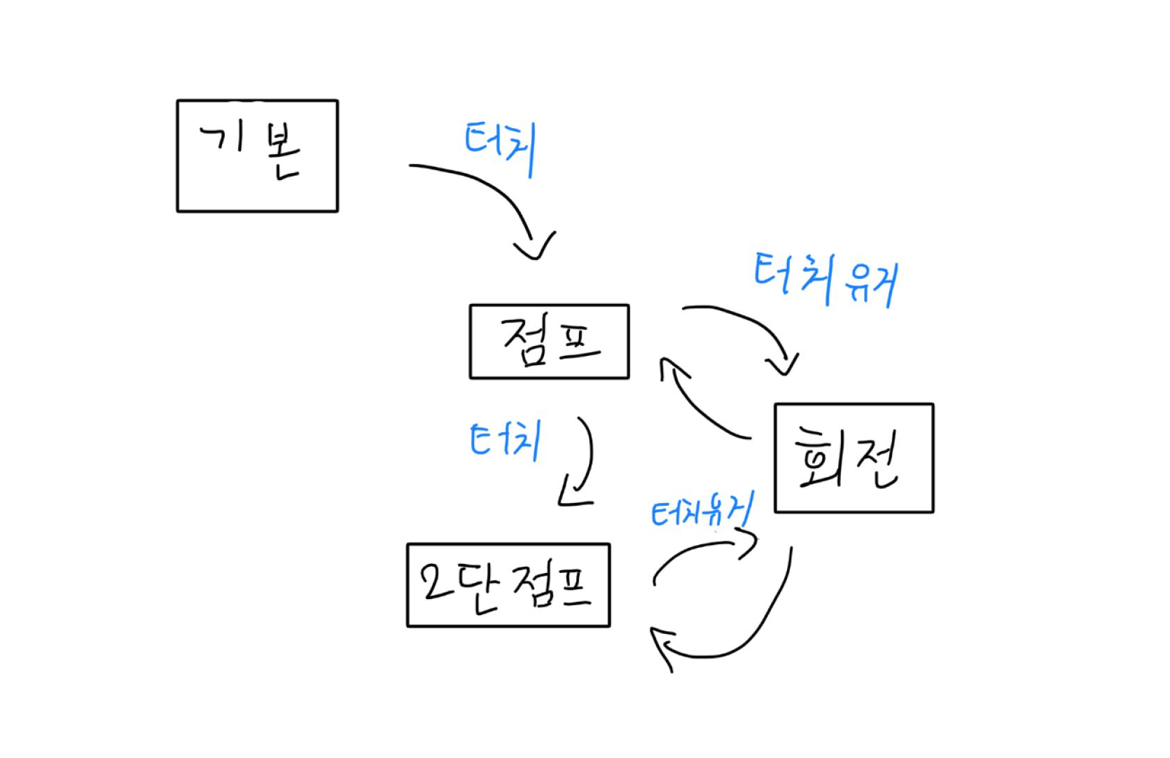 그리고 IPlayerState를 상속받는 상태(이동, 점프, 이단점프, 회전) 클래스를 작성했다.